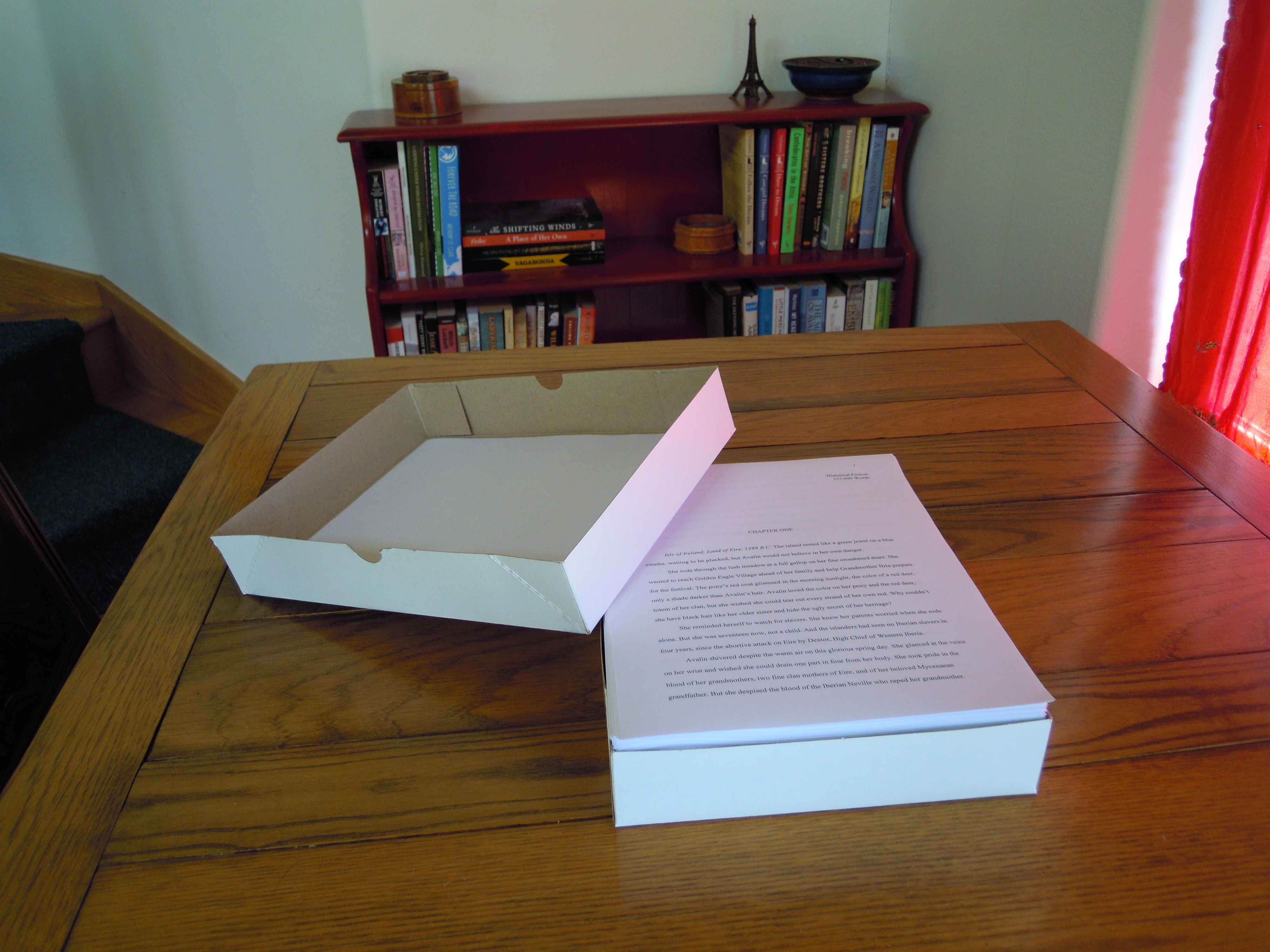 Here’s my newest creative effort, all tidied up for my beta reader Carol Beckley. I’ll print out more for my other readers, Judy Emmett and my daughter Carisa Cegavske.