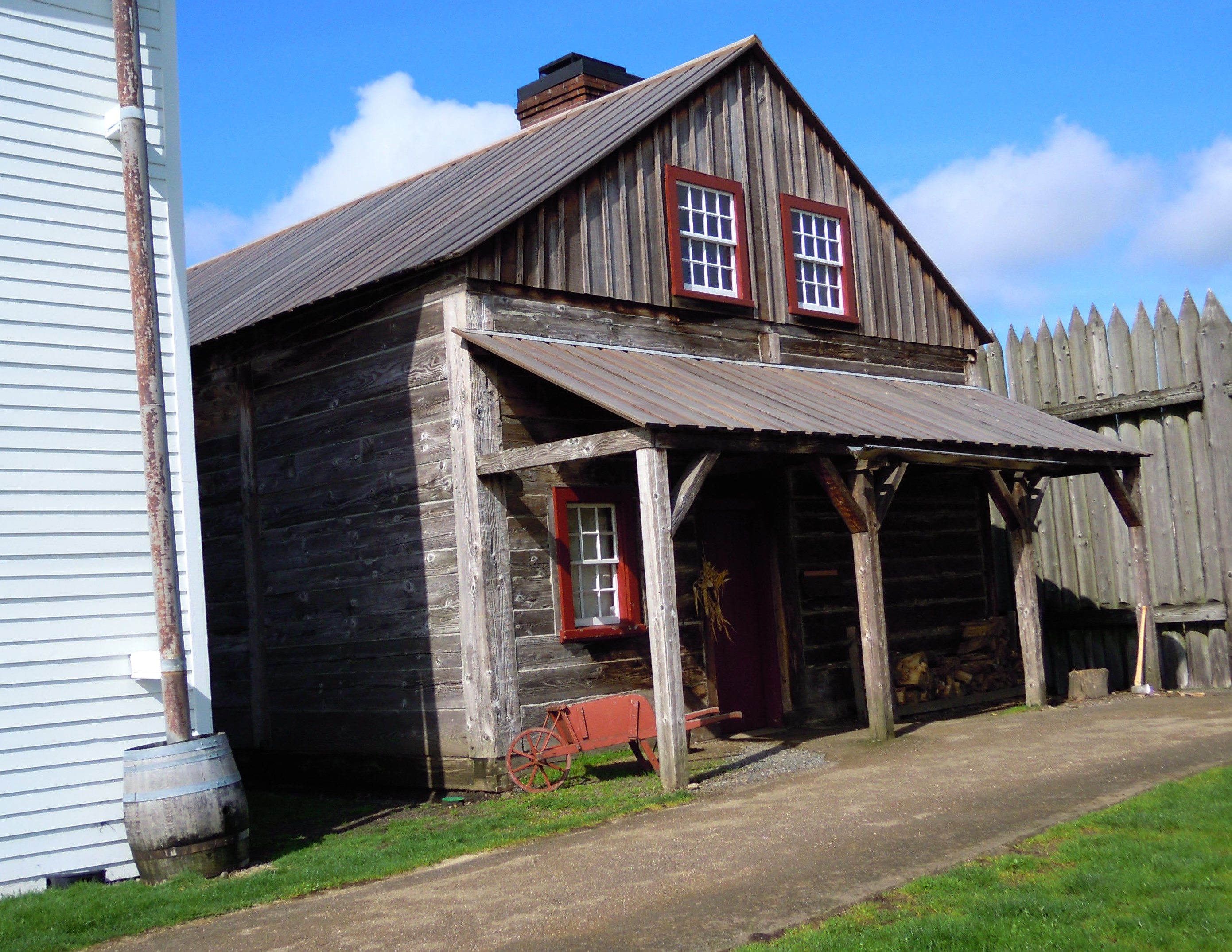 Like most of the fort buildings, the Bachelor’s Quarters were constructed in the Canadian post-on-sill fashion with sills of heavy, square-sawn timbers lying horizontally between upright grooved posts. Not a bit of paint on the unlined walls. But they did have glass windows.