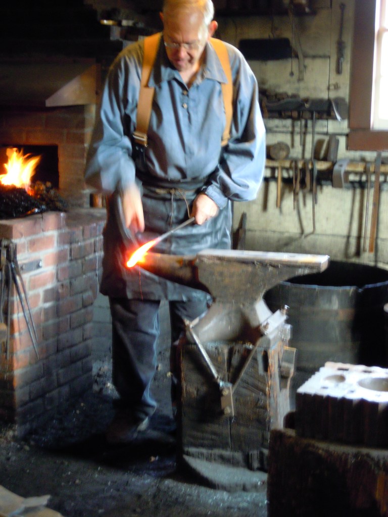 From the front door of the Big House you can look out on the working Blacksmith Shop at left and the well-stocked Indian Trade Store, straight ahead. And you can visit the Blacksmith Shop and Trade Store (shown below).