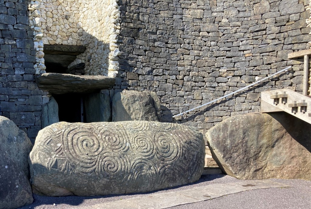 No one knows what those carved symbols mean, and the guide told us the triple spirals have never been seen anywhere else. We offered our thoughts. I suggested life, death, and rebirth. The people in my stories of ancient Ireland would believe this.
