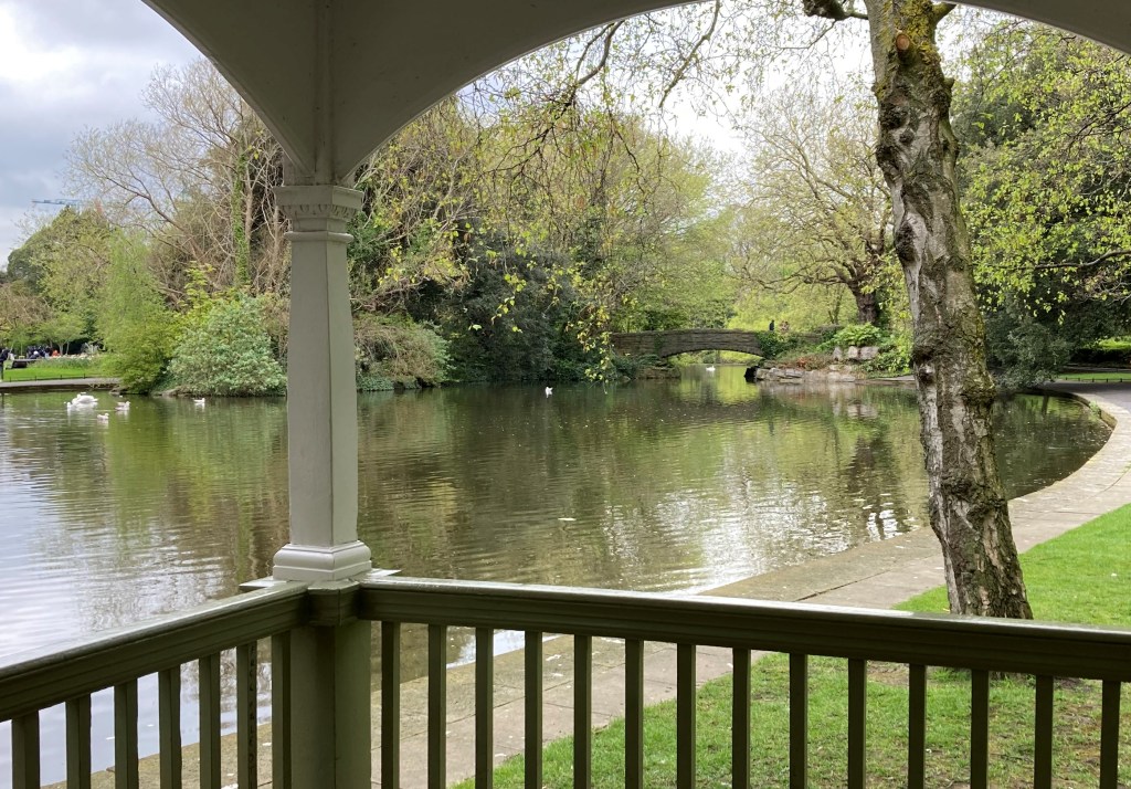 Back in Dublin the driver recommended we visit Saint Stephen’s Green on our own, a jewel in the center of the city. I did that. I remembered the serene beauty in the midst of the bustling city. I had seen it on previous trips. It wasn’t a sunny day this time but the park was beautiful anyway. Green gold, you might say.