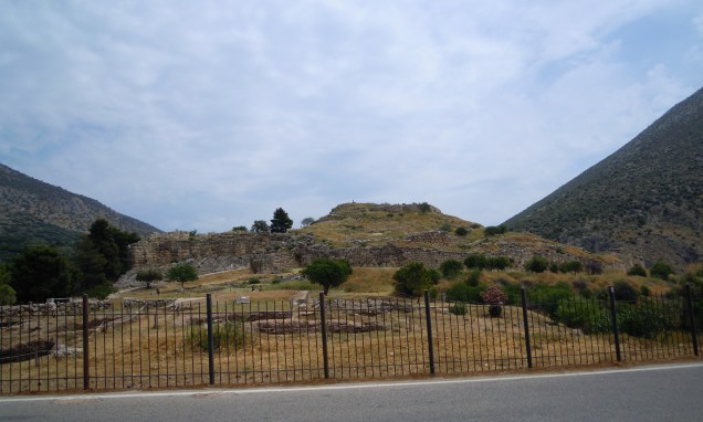 For all Tiryns’s majesty, nothing matched the reigning center of Mycenae. That was my destination the next day. I got up earlier to avoid the rush of the day before. To get to the acropolis of Mycenae I had to catch the same 9:30 bus I had taken to Tiryns. Mycenae was farther inland at 13 miles.