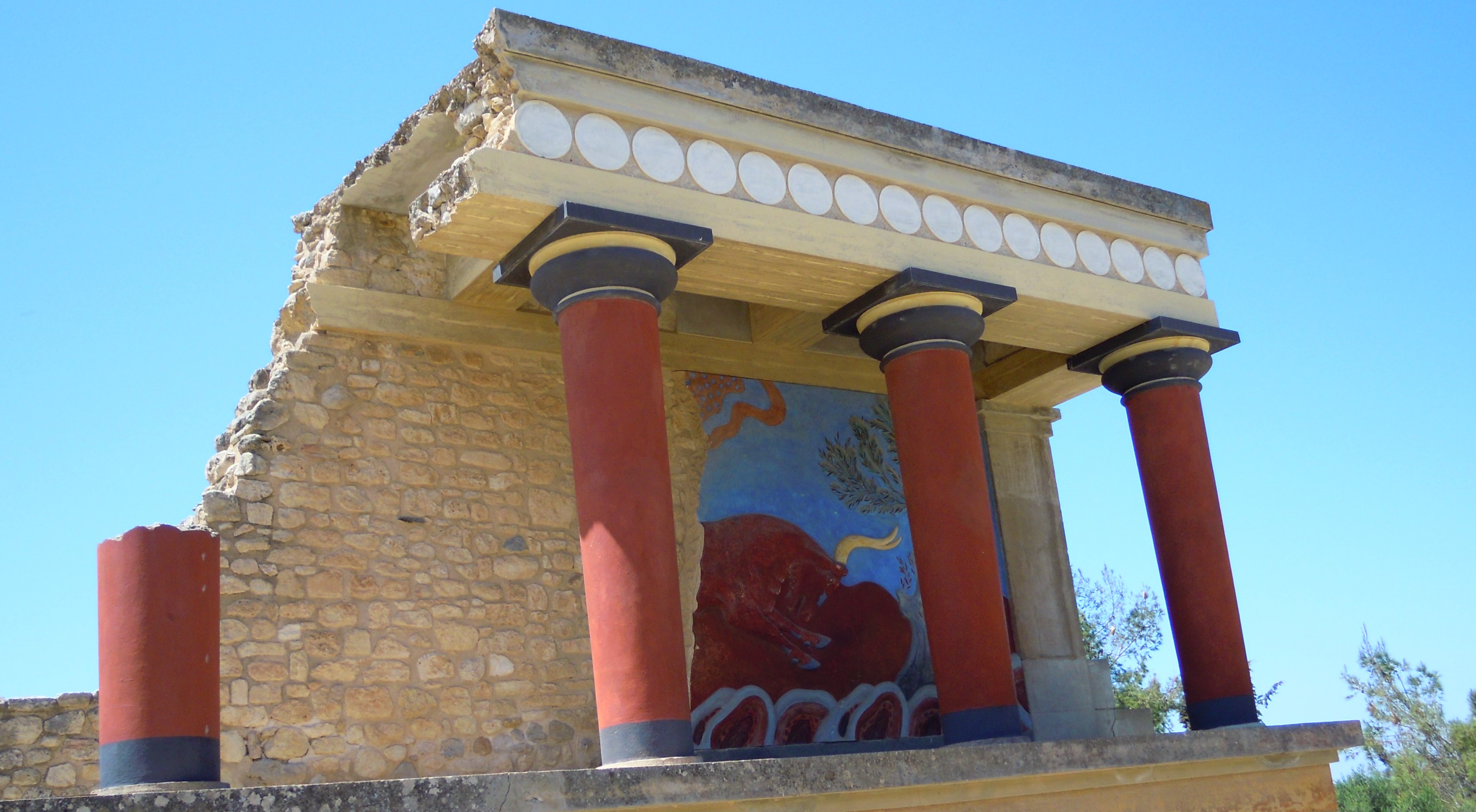 The fresco of the charging bull, part of the reconstructed ruins of Knossos, replicates some of the amazing art left by the Minoans of ancient Crete, one of many images that inspired me to write about the people who once lived on thisremarkable Mediterranean island, now one of the beautiful Greek Isles.