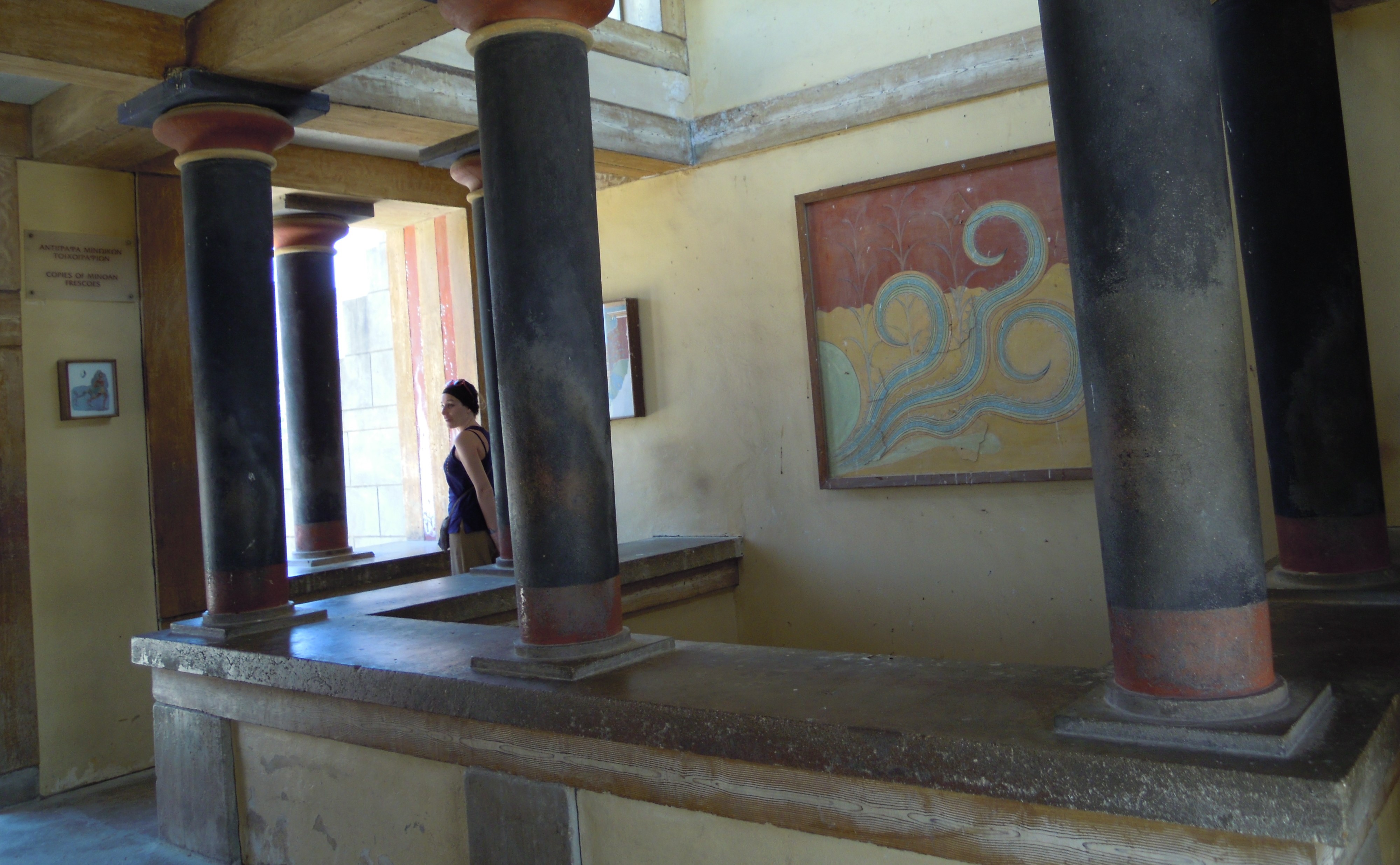 The photos here show the reconstructed hub of Crete, the temple (or palace) of Knossos which was dug out of the earth a hundred years ago after being buried for some 3,000 years. After seeing it and learning of the strong women depicted there, I wanted to immerse myself in that world. And so it began.